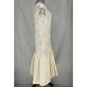 Evenings by Pantagis Gown Womens 4 Ivory Lace Dress Lined Bubble Hem Vintage 80s