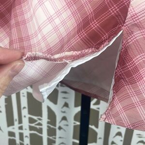 Ever After NEW Y2K Inspired Pink Plaid Mini Skirt sz L. Features light summer weight 100% polyester in a pink, cream, mauve & tan plaid print, fully lined, single hemline split over the left front thigh, hidden side zip and hook/eye closure, elasticized waistband. Brand new with tags and no flaws to note.
