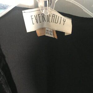 Ever Beauty black velvet patterned wrap - intricate patterns of velvet on this one size fits most wrap. So elegant, so comfortable to throw on when the AC is too high. Approximate measurement: 29 inches shoulder to hem in the front. Excellent preowned condition - no stains, no tears.