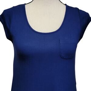 Ever New Blue Knit Top Womens Sz 2 Cap Sleeve Minimalist Capsule Staple Basic