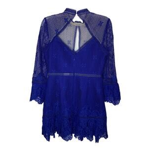Ever New Blue Lace Flare Sleeve NWT Dress Size 6 Flippy Scalloped Hem