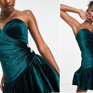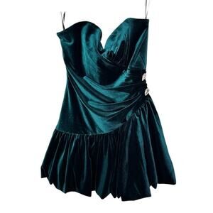 Ever New Bubble Hem Mini Velvet Emerald Dress Heart Diamanté Sz 8 Petite Party