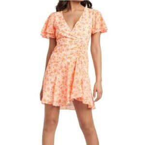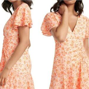 Ever New Joanna Ruched Mini Dress Apricot Harvest Botanical Size 10 NWT