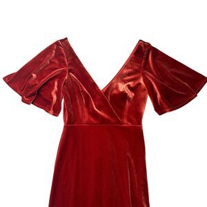 Ever Pretty Burnt Orange Velvet Long Double V Bridesmaid Formal Prom Dress Sz M