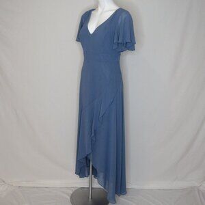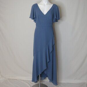 This is an Ever Pretty OREE dusty blue chiffon bridesmaid / formal dress with a lotus leaf hemline in women's size 10