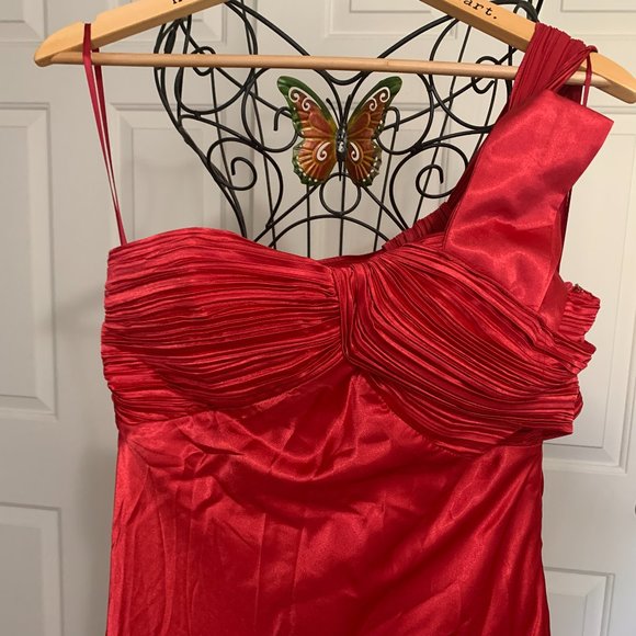 Fire engine Red satin floor length one shoulder gown. Elegant! Never worn; tags on dress. $50 OBO