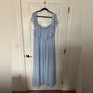 Charming soft blue gown with elegant ruffles. Perfect for weddings.