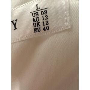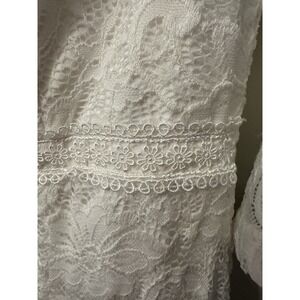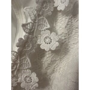 This dress is beautiful with intricate flower lace design. Says size large but US woman's 8