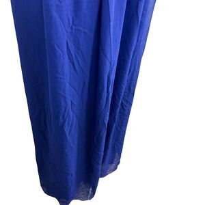 This Ever Pretty women's dress is a formal evening gown in size 3X, featuring a sleeveless V-neck design with a chiffon fabric construction. The dress has a solid blue color with a zipper closure and falls into a long length. It is ideal for occasions like weddings, parties, or formal events in the summer, fall, or spring seasons. The fit & flare style, A-line silhouette, and lined interior make it a flattering and comfortable choice for plus-size women looking for an elegant and stylish outfit.