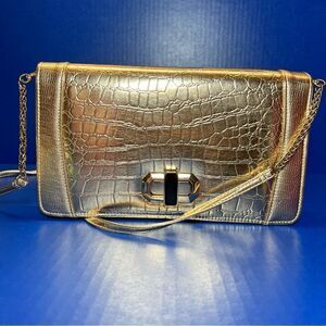 Ever New Melbourne Gold Crocodile Embossed Small Crossbody Bag
