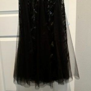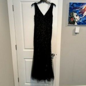 Delicate embroidery pattern with a mermaid design make this evening dress flattering and feminine