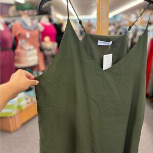 Discover elegance with this olive green camisole top, perfect for layering or wearing alone. Its chic design adds a touch of sophistication to any outfit.