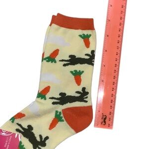 Easter Novelty Socks Women’s Bunny Carrots Yellow Crew Size 9-11