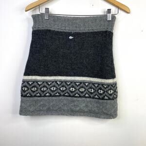 Everest Charcoal Gray Nordic Fair Isle Wool Pom Pom Knit Mini Skirt womens s m