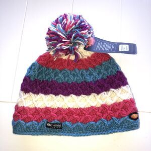 Everest Designs Malaki Beanie Wool Candy Pink NWT Striped Adult Size Pompom