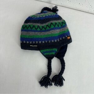 Everest Toddler size 2-4 Blue green gray striped Wool Blend Lined Toque Beanie in good preowned condition.