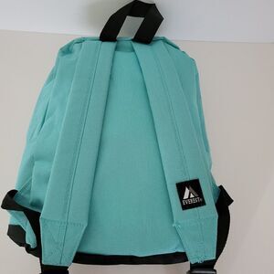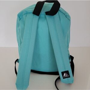 Aqua blue Everest Junior Backpack has the convenience of a backpack in a slimmer, more compact shape. It's also great as a lunch bag- the front zippered pocket provides extra room for utensils and napkins. This junior sized backpack is NWT.