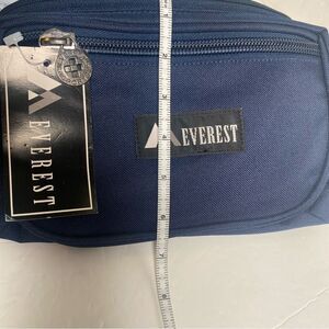 Everest Blue Belt Bag New With Tags. Excellent new condition. Front zipper compartment with key holder. Main zipper compartment with pocket. Back zipper compartment. Adjustable belt strap. Measures approximately 16" x 6.5".