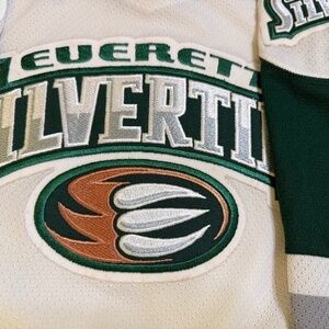 Rep your Everett Silvertips pride with this official CCM/Reebok WHL hockey jersey, made in Canada and featuring full embroidered crests and patches. This is a Youth L/XL, which also fits smaller adults or teens depending on build.