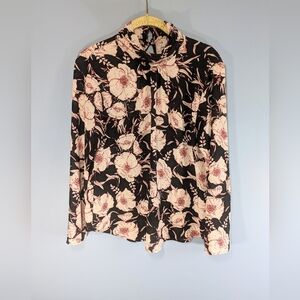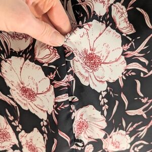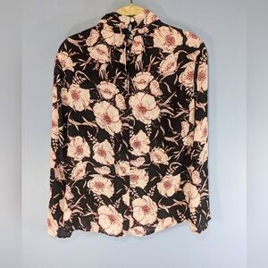 Evereve Allison Joy Black Floral Pleated High Neck Top Decorative Button Back