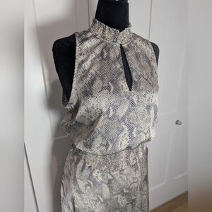 Evereve Allison Joy Cora Womens Midi Dress Snake Print Sleeveless sz L Wedding