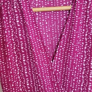 Evereve Allison Joy | Dark Pink & White Dot Print Wrap Blouse