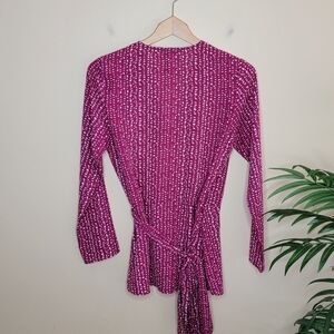 Evereve Allison Joy | Dark Pink & White Dot Print Wrap Blouse.