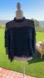 Beautiful Navy top with sheer fabric at top and as ruffles all around and on sleeves
