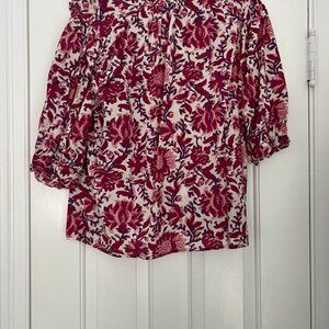 Evereve Ari Ruffle Collar Floral Print Blouse SZ Small NEVER WORN