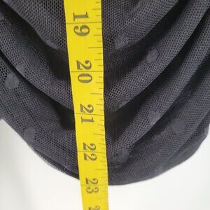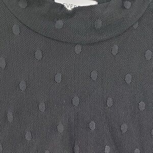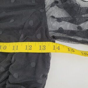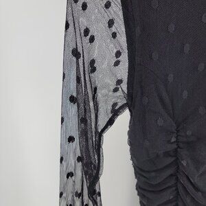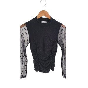 Evereve Black Ruched Mesh Dot Top | Sheer Sleeve Mock Neck | Size Small