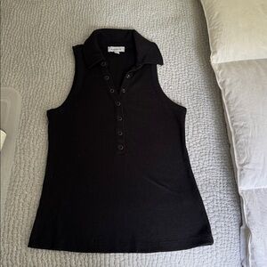 Elegant black tank with a collared neckline. Features a button-down front. Perfect for layering or standalone wear.