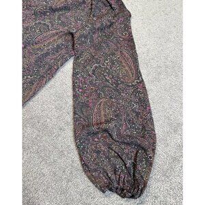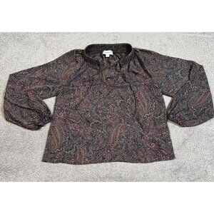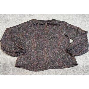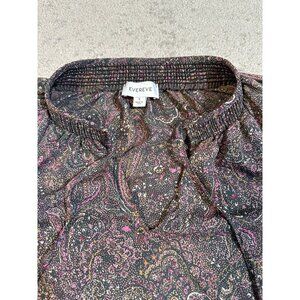 Evereve Blouse Womens Small Brown Pink Paisley Kyra Peasant Blouse V Neck