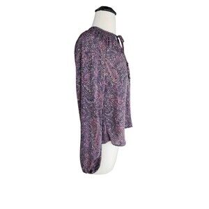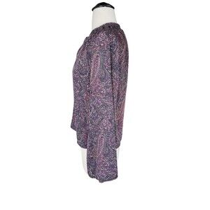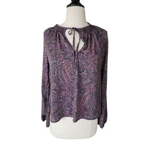 Evereve Blouse Womens XS Artsy Boho Corpcore Green Pink Kyra Paisley Smocked