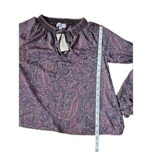 Evereve Women's Green Pink Kyra Paisley Smocked Long Sleeve Blouse