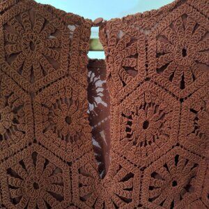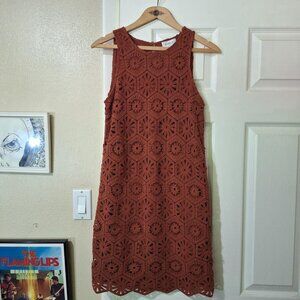 Evereve Brooklyn Crochet Dress brown brick Fall Cocktail Dress pockets Size X
