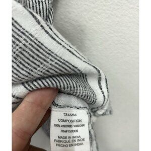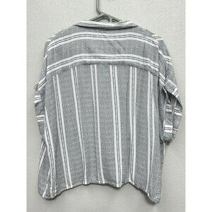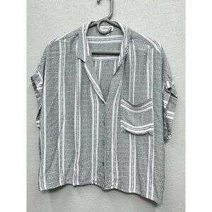 Evereve Button Front Crop Top Shirt Large Grey Stripe Viscose Cap Sleeve