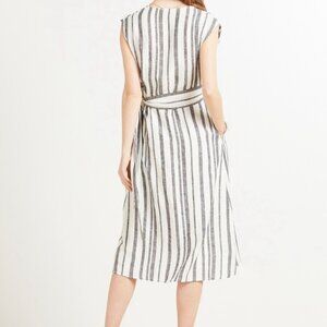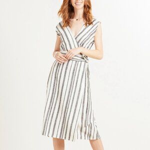Tags: Resort Wear Beach Vacation Tropical Wrap Dress Midi V-neck Tie Waist Wrap Linen Blend Lightweight Vacation Outfit Neutral Striped Wedding Guest Casual Chic Everyday Style Workwear Dress Brunch Date Night Travel Wardrobe Capsule Wardrobe Resort Casual Minimalist Contemporary Closet Staple Pretty Classic Breathable Natural Utility Muted Tones
