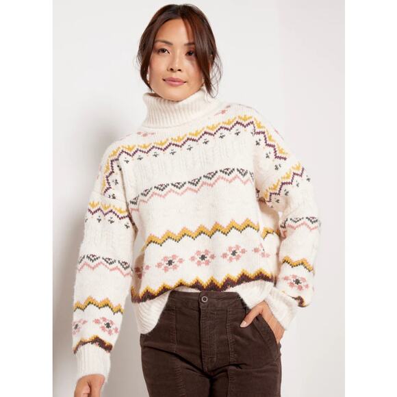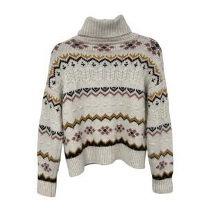 Evereve Cream Multi Lyra Fair Isle Wool Knit Blend Turtleneck Sweater Womens XS