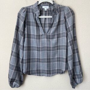 This plaid blouse by EVEREVE will instantly elevate your wardrobe, featuring a ruffled collar and long puff sleeves.