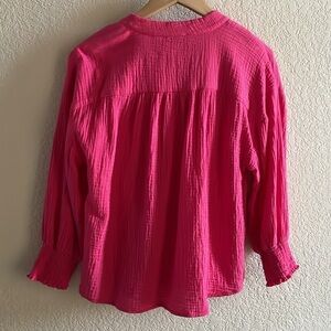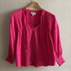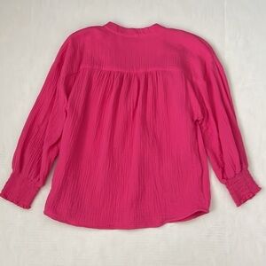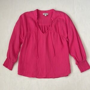 Evereve Eleanor Smocked Gauze Cotton Top V-neck Long Balloon Sleeves Size Small