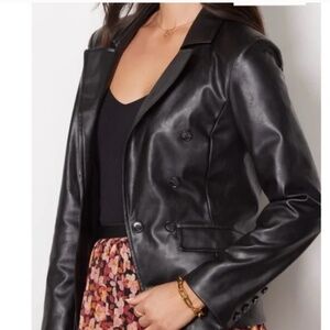 Evereve Faux Vegan Leather Black Blazer Jacket size M