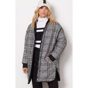 Evereve Georgetown Coat Faux Leather Long Quilted Reversible Plaid Jacket XS