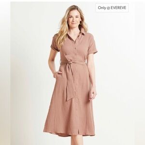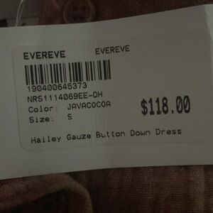 Evereve Hailey Gauze Button Down Dress Sz S 100% Cotton Java Cocoa NEW