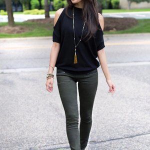 Evereve Jamison black cold shoulder short batwing sleeve sweater top, size XS