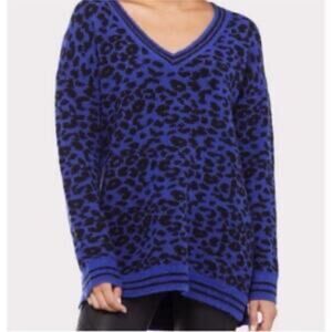 Evereve John + Jenn Leopard Print V-Neck Sweater - Blue and Black XS