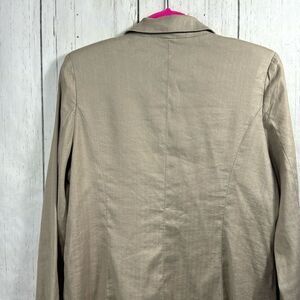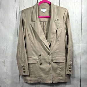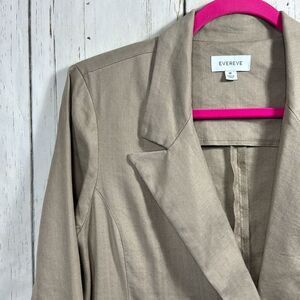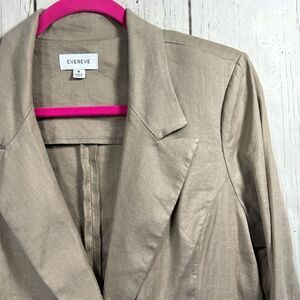 Evereve Linen Blend Double Breasted Blazer Beige Neutral Lightweight Modern Workwear Size M