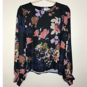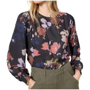 Evereve Long Sleeve Blouse S Black Abstract Floral Print