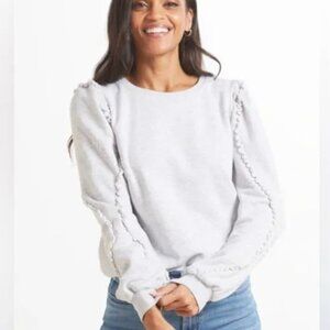 Evereve Lucy Ruffle Long Sleeve Sweatshirt Heathered Grey Size Small