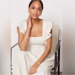 Evereve Mae Windowpane Plaid Ruffle Sleeve Maxi Dress Small