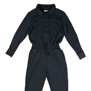 Evereve Myra Long Sleeve Black Jogger Jumpsuit Zip-Up Drawstring Size Small